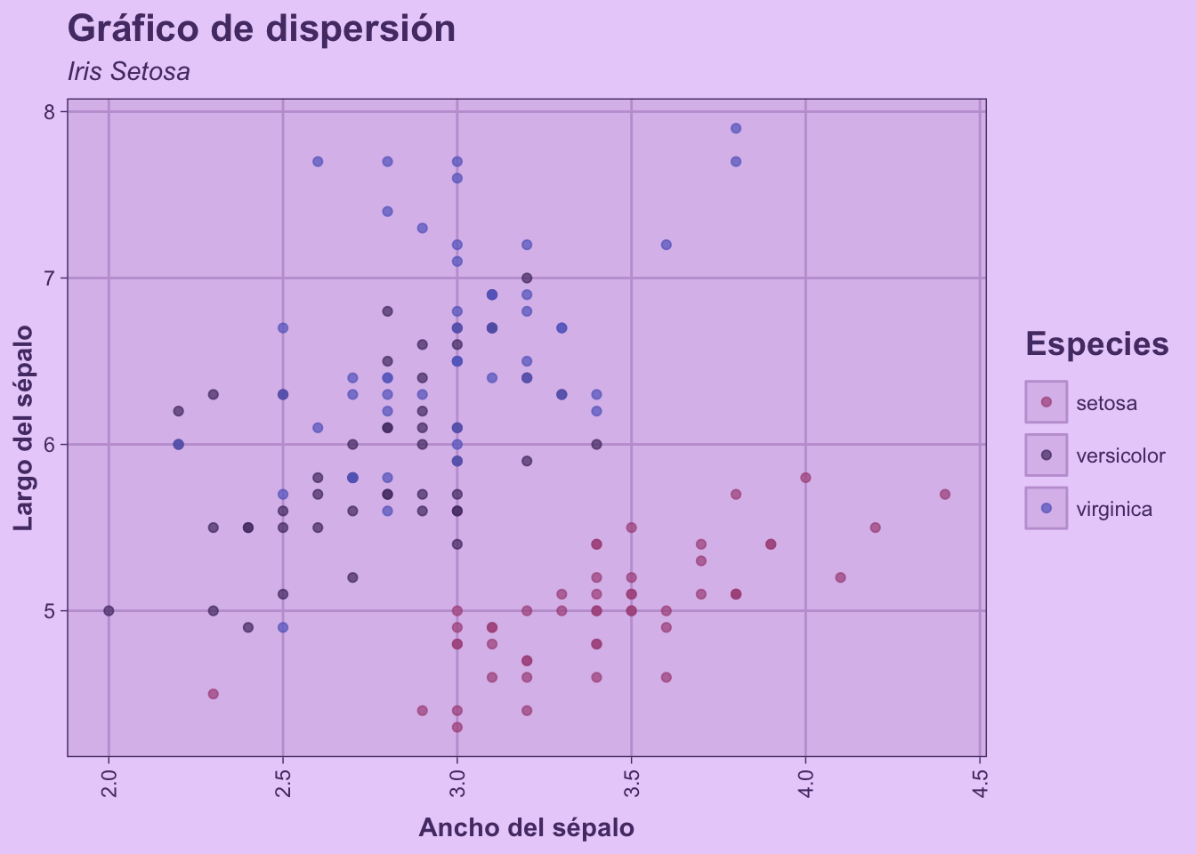 Podemos configurar y agregar textos del gráfico con la capa labs():