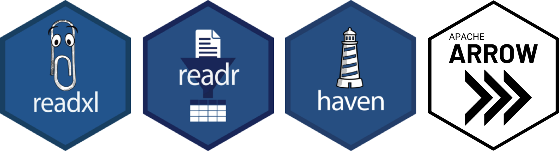 {readxl} es uno de los paquetes de lectura de planillas Excel. Para escribir un archivo Excel está {writexl}{readr} lee y escribe datos de múltiples formatos (csv, rds, rdata), usualmente de forma más veloz y cómoda{haven} permite cargar archivos SPSS, Stata, y SAS{arrow} es un formato moderno de datos columnares, optimizado para grandes volúmenes y velocidad de carga, y pensado para usarse en distintos softwaresProbemos cargando unos datos!