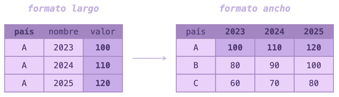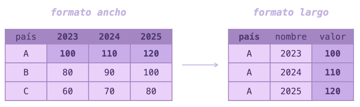 Veamos un ejemplo donde transformamos los datos de estimaciones de población del INE, desde un formato ancho (años en columnas) a uno largo (años en filas).