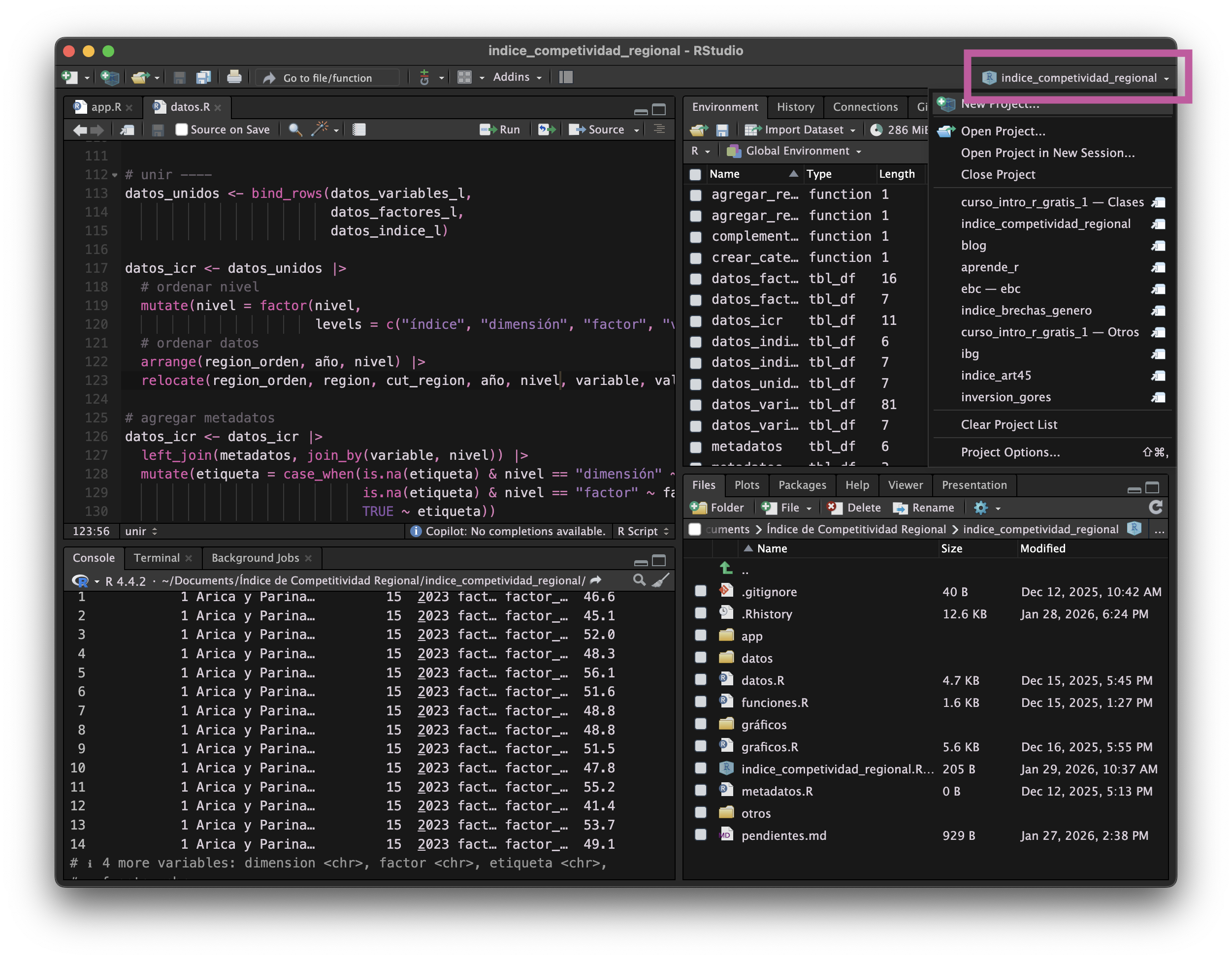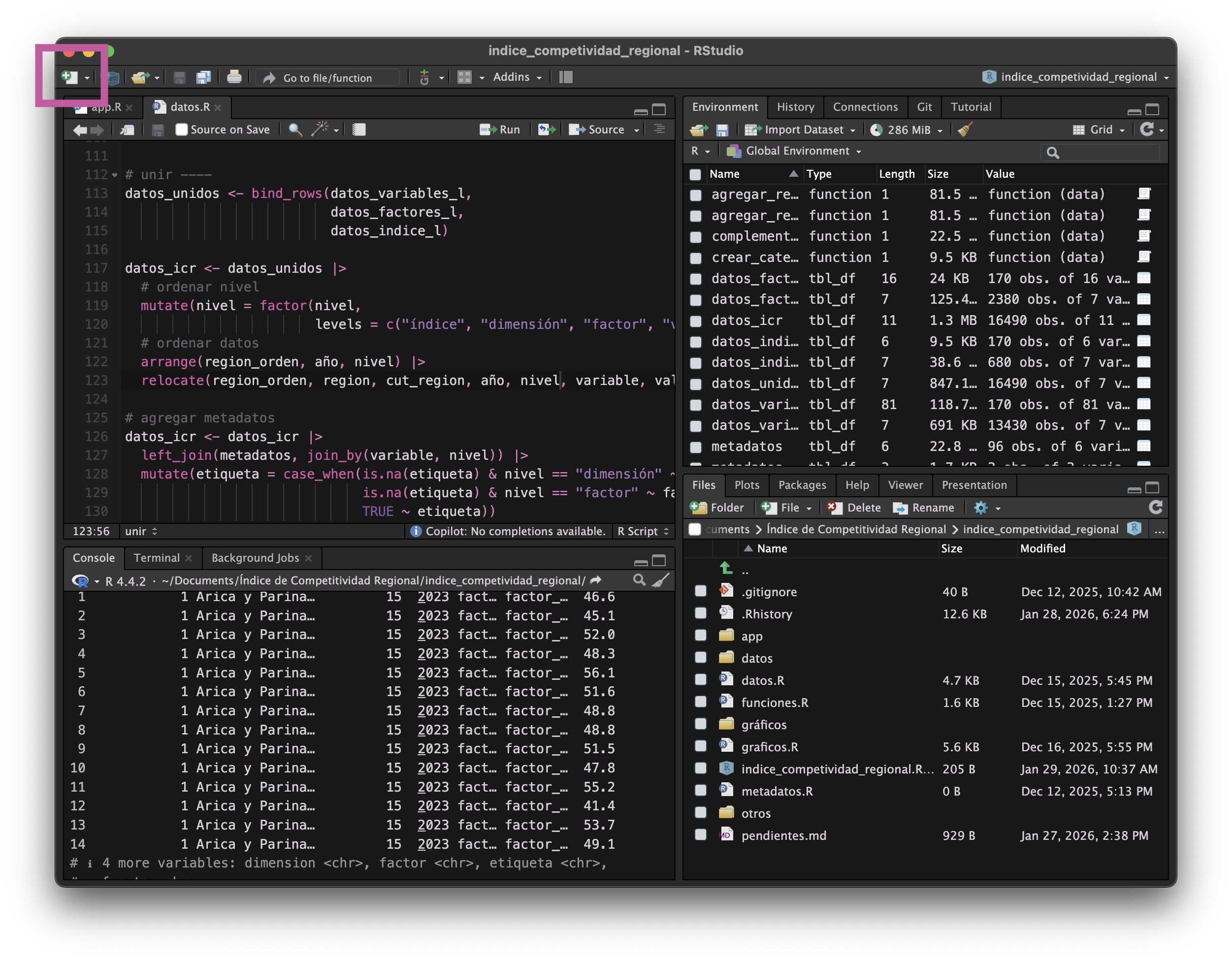 Archivo .Rproj que marca nuestro espacio de trabajo: una carpeta específica que reúne todas las piezas de nuestro análisis.