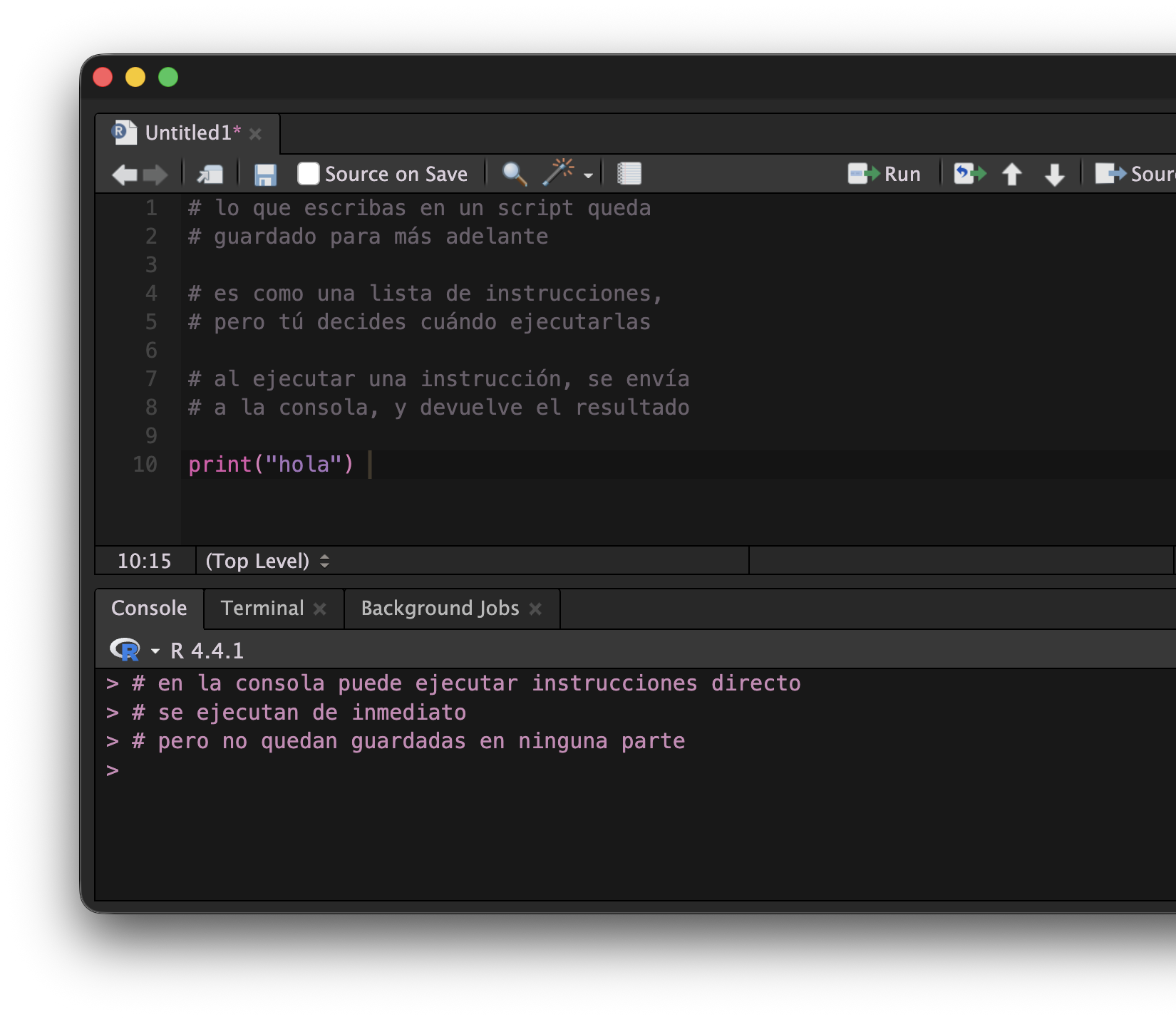 La gracia de R es guardar todos los pasos de tu análisis, lo que facilita corregirlos, reutilizarlos para nuevos casos, y compartirlo con otros.